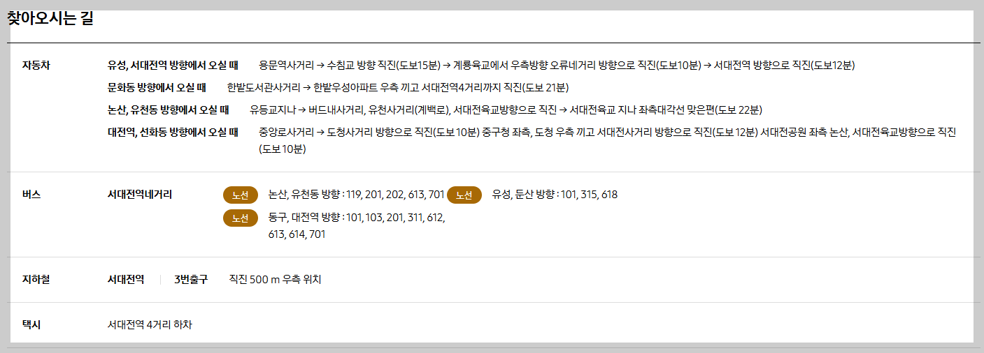 ※대전 1호선 서대전네거리역 3번 출구에서 서대전역 방면으로 550m 지점 우측